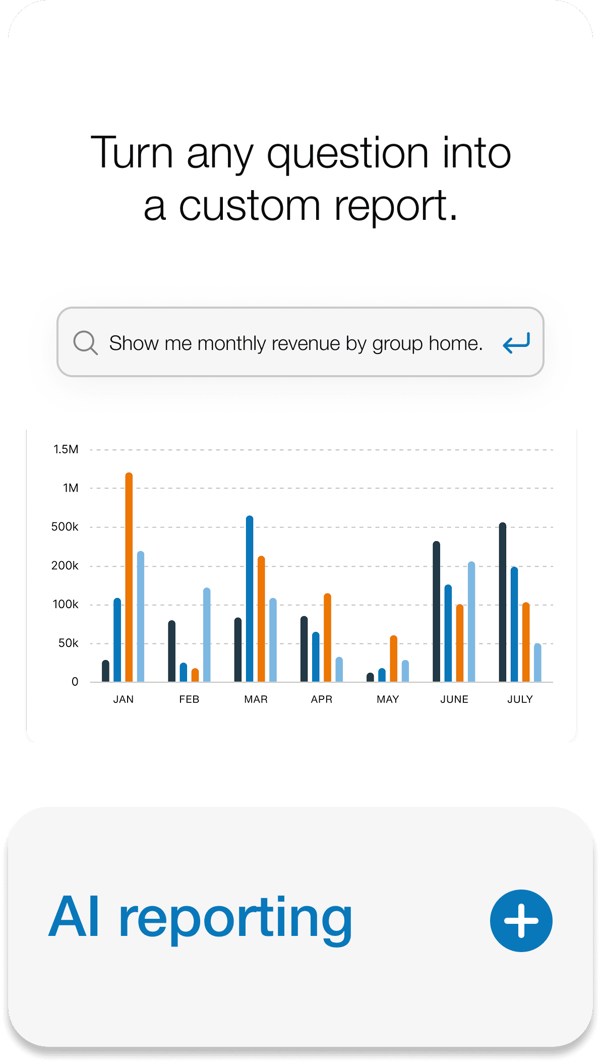 Build reports instantly from EHR, eMAR, billing, and payroll data.